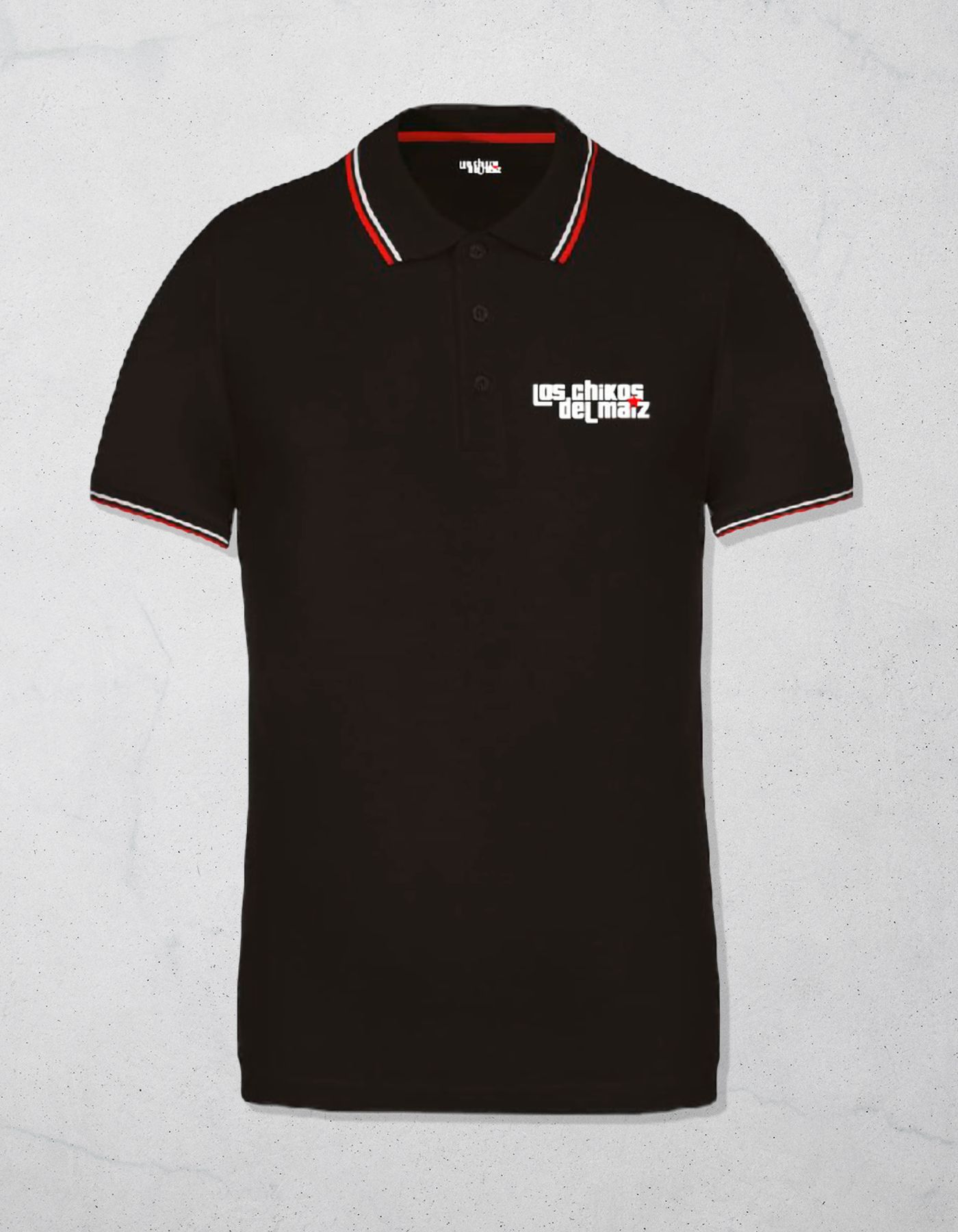 Polo con el logo bordado de Los Chikos del Maiz.
